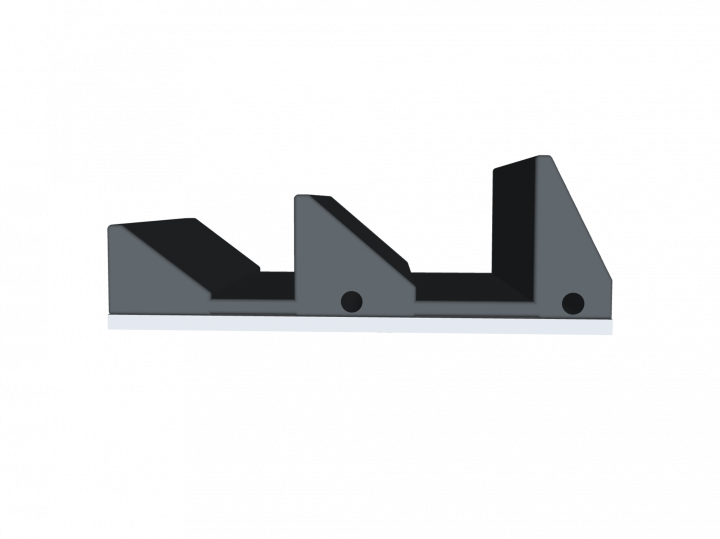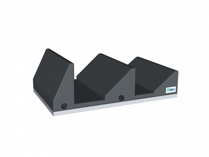 Coussin type "toit d'usine" pour positionnement de la cheville.