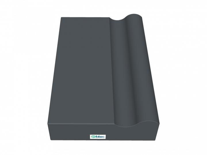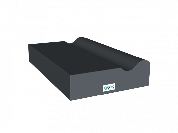 Coussin rectangulaire avec gouttière supérieure transversale. Pour décubitus latéral. Longueur 310mm x largeur 500mm x hauteur 100mm.