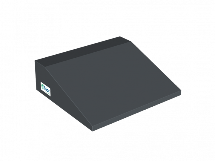 Coussin rectangulaire à pan coupé. Longueur 350mm x largeur 400mm x hauteur maximale 120mm.