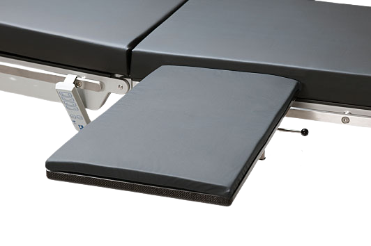 Table de chirurgie pour la main et le bras en fibre de carbone. Coussin, pied support et clameau compris. Forme rectangulaire.