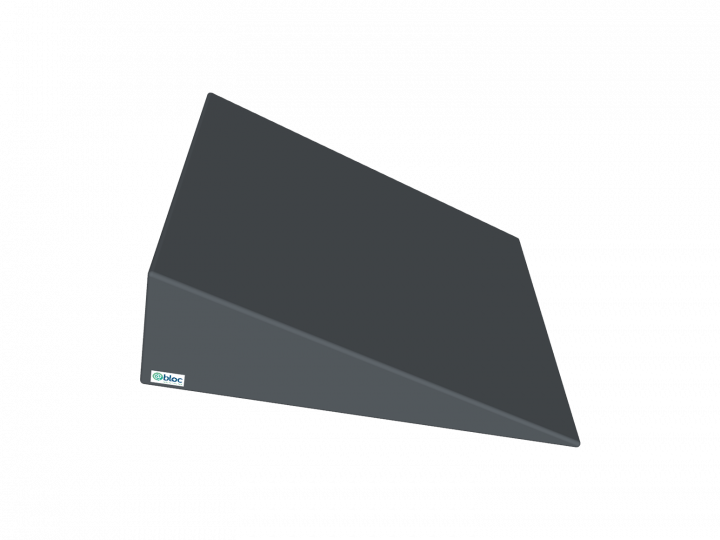 Coussin triangulaire rectangle à angle droit inférieur. Longueur 280mm x largeur 345mm x hauteur 100mm.