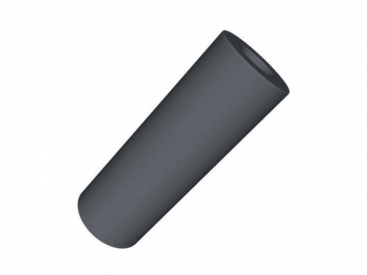 Coussin tubulaire. Longueur 400mm x diamètre extérieur 70mm. Avec un diamètre de 35mm pour le trou transversal. Le coussin est fermé par défaut mais il peut être débouchant sur demande.