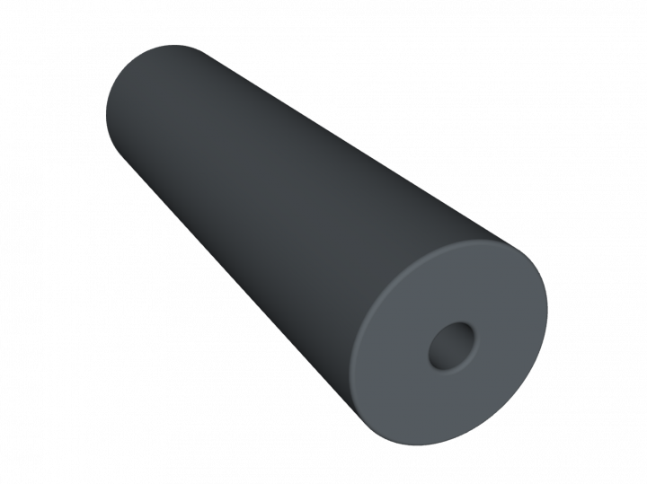 Coussin tubulaire courbé. Ce coussin est par défaut fermé mais il peut être débouchant sur demande. Longueur 530 x diamètre extérieur 70mm avec un diamètre trou transversal 16mm.
